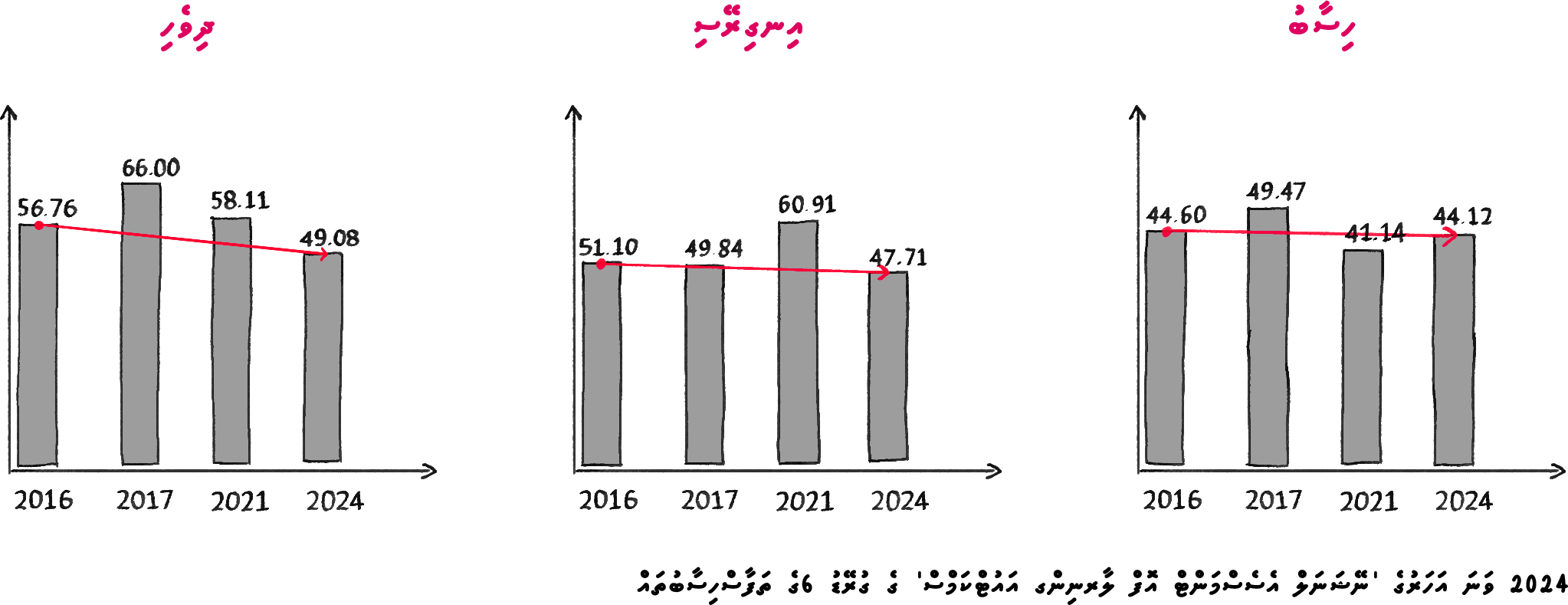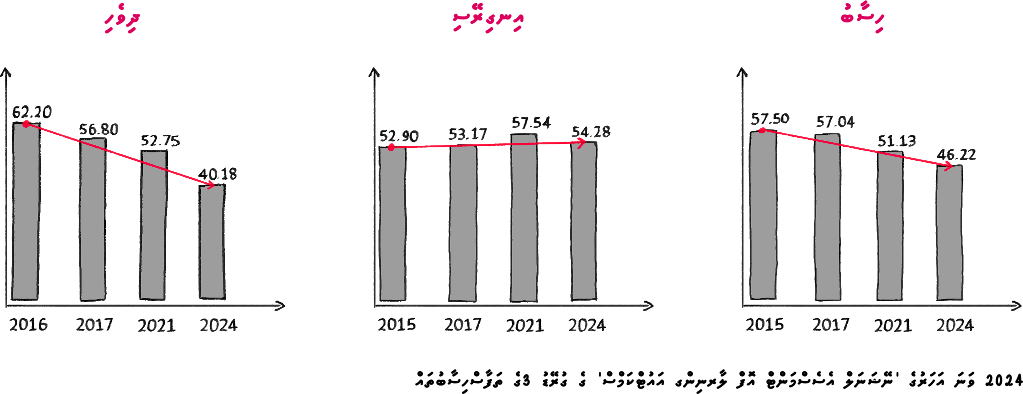 ގްރޭޑް 6 ގެ އެވްރެޖަކީ 47.71% ވިއަސް، ކިޔުމުގެ ހުނަރުތަކުގެ ނަތީޖާ ވަނީ 30.81% އަށް ވެއްޓިފައެވެ. - ދިވެހި ބަސް (އަސާސީ ހުނަރުތައް): ގްރޭޑް 3 ގެ އެވްރެޖަކީ އެންމެ 40.18% އެވެ.